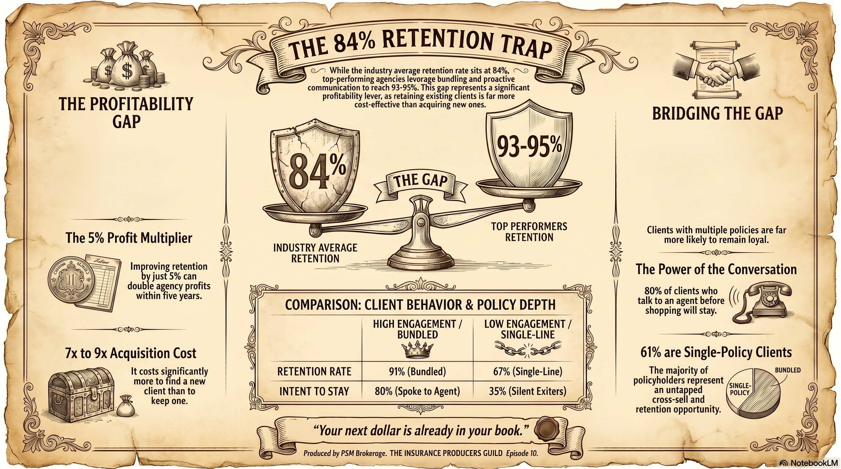 SPEAKER_01And this is exactly why agents using PSM brokerage are hitting those higher retention numbers. The PSM system literally flags the retention risks for you, so you are not guessing who needs a call. They give you the retention tools and the cross-cell resources to plug the leaks.